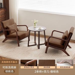 【可拆洗棉麻】2椅1圆桌-咖啡色24号