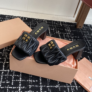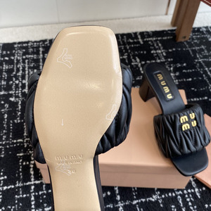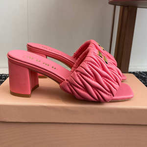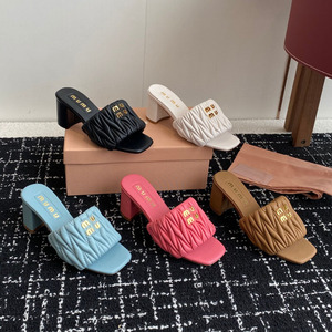 女性用ハイエンドプリーツレタースリッパ、ハイヒール夏アウター、2025年新作女性用スクエアトゥ太ヒールサンダル、柔らかい
