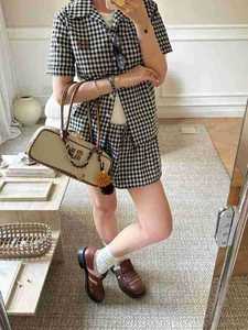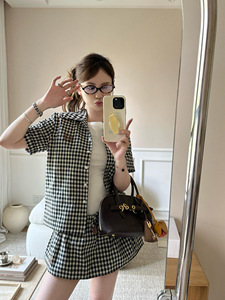 MIU チェック柄スカート 25 新しい南洋ハイバージョンレトロカレッジスタイルハイウエストミニ刺繍 A ラインスカート