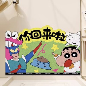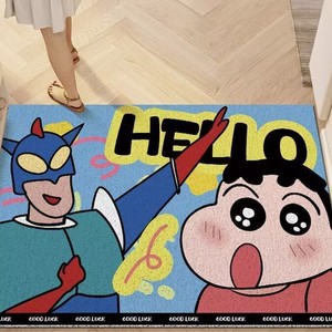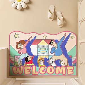 クレヨンしんちゃん 玄関ドアマット 家庭用玄関ドア 防汚マット ルイベルベット カット可能でお手入れ簡単 玄関マット