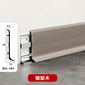 アルミ合金製巾木 木目調 6cm 二層式 バックル式 超薄型 木目調メタル巾木 床巾木 接着剤不要