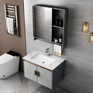 升级中国制造-K11灰色吊柜-灰岩板61*47-全套配件+毛巾镜柜-