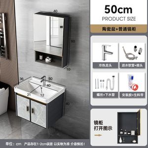 升级中国制造-K11灰色吊柜-陶瓷盆柜51*35-全套配件【无镜】-