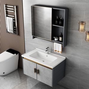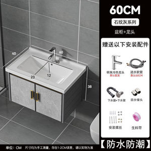 现代简约太空铝浴室柜卫生间洗脸盆组合一体陶瓷洗手池洗漱台面盆