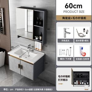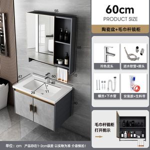 升级中国制造-K11灰色吊柜-陶瓷盆柜61*41-全套配件+毛巾镜柜-