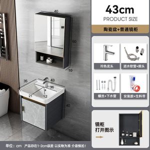 升级中国制造-K11灰色吊柜-陶瓷盆柜43*35-全套配件【无镜】-
