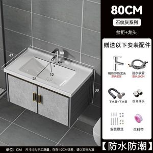 升级中国制造-K11灰色吊柜-陶瓷盆柜81*47-全套配件【无镜】-