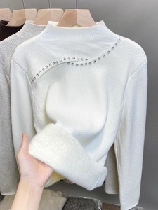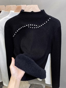 加绒半高领毛衣女一体绒加厚打底衫2025秋冬新款针织衫钉珠上衣潮