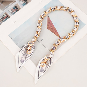 ショルダー交換用バッグチェーンシルクスカーフ織り装飾バッグストラップメタルバッグチェーンロングシンプルバッグ延長チェーン