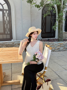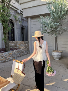 日光島_清涼感のあるVネックヘビープリーツガーゼベストトップスエレガントな気質のキャミソールトップス