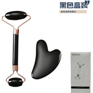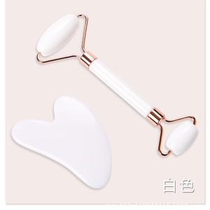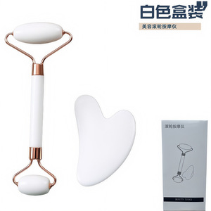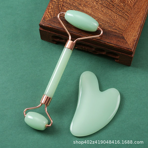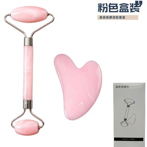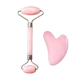 フェイシャルローズクォーツ両頭ローラーマッサージ器、非翡翠製ハート型美容マッサージ、フェイススクレーパーマッサージセット