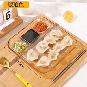 食品グレードの鉛フリーのガラス餃子プレート、ディップソーサー付き、厚く耐久性があり、高温に耐え、電子レンジに適しています。