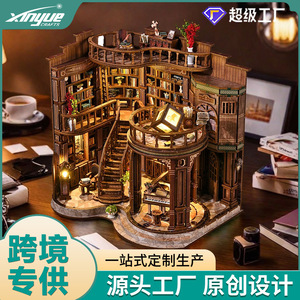 Qimeng Bookstore DIY キャビンレトロヨーロッパ建築モデル手組み立てミニチュアハウスクリエイティブおもちゃギフト