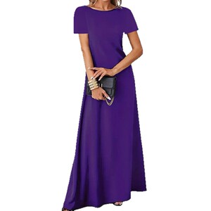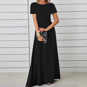 2025 新しいヨーロッパとアメリカの国境を越えた外国貿易 Amazon AliExpress 夏の女性のラウンドネック無地ロングドレス