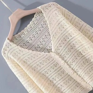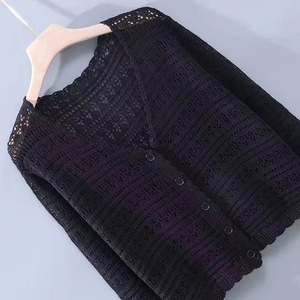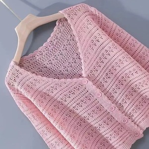 夏の新しいスタイルの女性用アイスシルクニットカーディガン、ゆったりとした韓国スタイルの薄い長袖ショート中空日焼け止めコートショールアウター