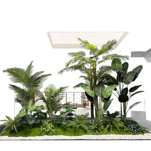 模擬植物造園、大型サボテン、オオバコ、鉢植え、オフィス、食堂、階段、窓、緑の植物の装飾