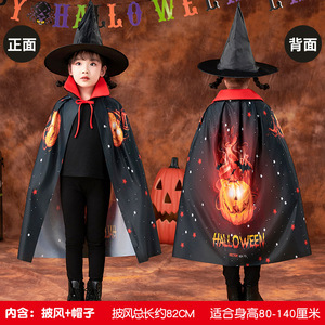 クロスボーダーハロウィン子供用マント立体プリントパフォーマンス衣装パフォーマンス衣装マジシャンウィザードコスチューム帽子セット