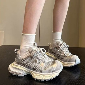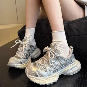 时尚系带老爹鞋2025秋季新款增高显瘦运动鞋透气厚底增高休闲女鞋