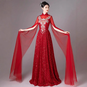 古筝パフォーマンス服大人女性コーラスパフォーマンス服レッドライト高級民族音楽試験パフォーマンスソロイブニングドレススカート