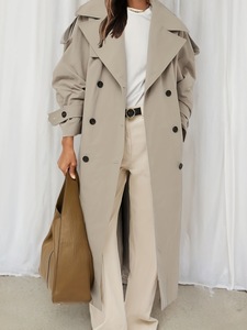 2025跨境新款欧美双排扣风衣防风双排扣长款跨境代发