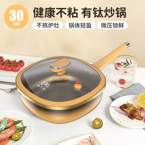 国境を越えたチタン岩中華鍋ノンスティック平底中華鍋フライパン家庭用クリエイティブ鍋低油煙ユニバーサル卸売