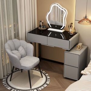 灰色63.7桌+二抽柜+镜+花瓣椅