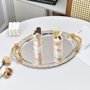 欧式托盘椭圆形托盘蛋糕香薰盘首饰高级感化妆品收纳花边托盘摆件