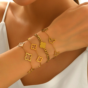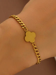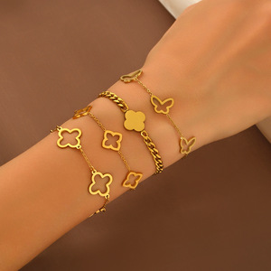 跨境钛钢四叶草幸运镂空花朵设计时尚简约工厂批发直销手链女爆款