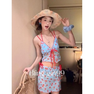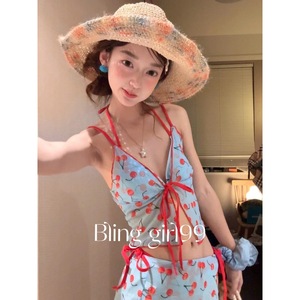 【スイートティー】ガールチェリーサスペンダー4点セット コンサバセパレート水着 レディース ビキニ 小さめ フレッシュウォーターパーク