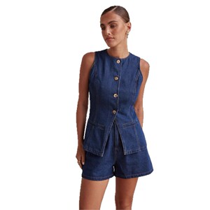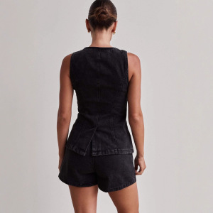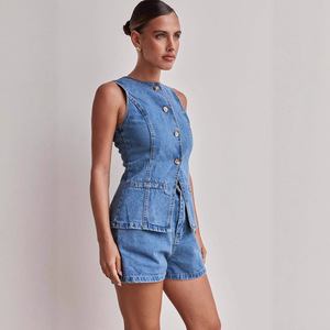 2025 春夏新作アマゾン独立系ヨーロッパとアメリカのファッションノースリーブウエストハイウエストルーズデニムショートパンツスーツ
