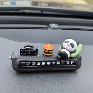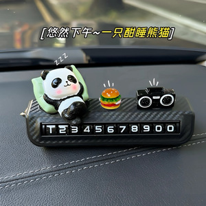 睡姿熊猫公仔车载摆件临时停车电话牌高级滚轮号码牌纤维带安全锤