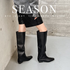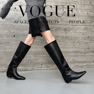 牛皮版~方头高筒裤管靴女2025新款秋冬粗跟骑士靴不过膝长靴百搭