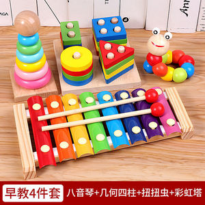 早教积木玩具宝宝绕珠串珠益智套装蒙氏儿童木制五合一敲琴