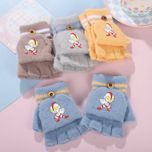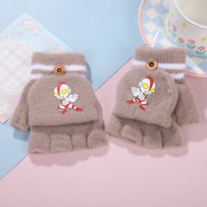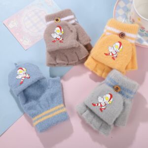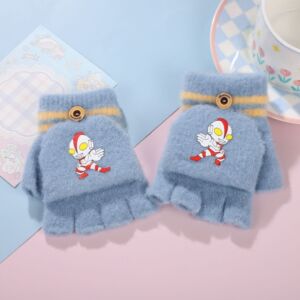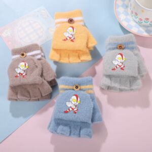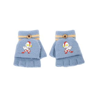 宝宝可爱奥特曼针织手套儿童秋冬款保暖翻盖手套卡通刺绣半指手套