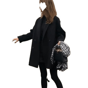 韓国版の夏シーズンの大きなポケットの小さなウールコート女性用スーツ襟ルーズスタイルの女性用ミドル丈ウールコート