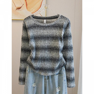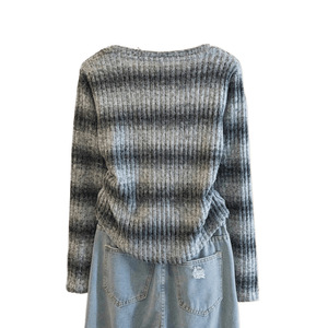 広州十三行高品質!女性用右肩Tシャツ、新しいスタイル、スリムフィット、ストライプ長袖ボトムシャツ、冬用トップス