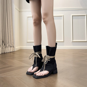スポットレトロパンツレギンスレースアップビーチサンダル女性の夏の新しいリラックスカジュアル厚底サンダル