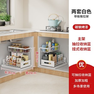 L型可抽拉置物架厨房台面双层整理架下水槽多功能百货大全收纳架