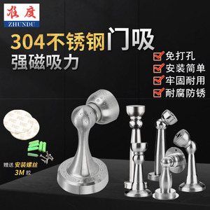 304ステンレス鋼製ドアストッパー、穴あけ不要、延長タイプ、衝突防止、寝室、浴室用ドアストッパー、緩衝、衝突防止