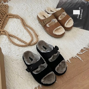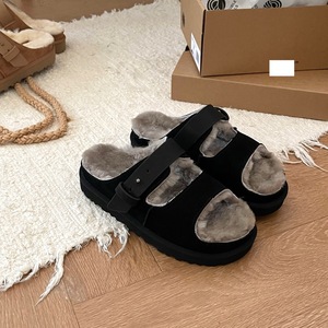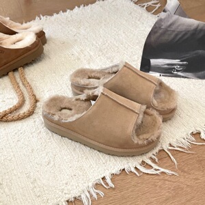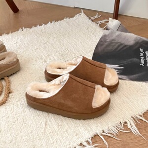 河南桑坡皮毛一体舒芙蕾毛毛拖增高保暖魔术贴二字露趾毛拖一脚蹬
