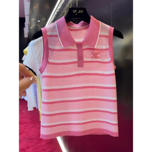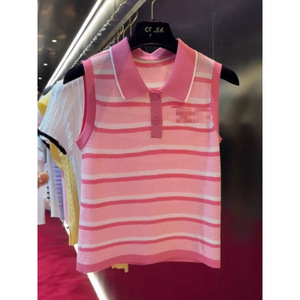 2025年新作夏韓国版スリムフィットニッチ万能ストライプノースリーブセーターラペルトップ