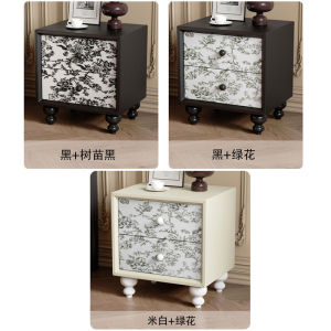 中古风床头柜小型卧室法式复古高级感黑色主卧实木储物柜现代简约