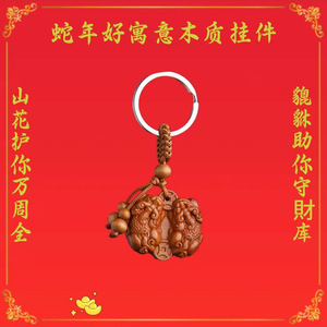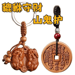 桃木公母貔貅山鬼花钱平安钥匙扣挂件男女汽车挂饰