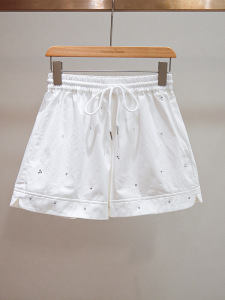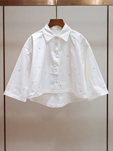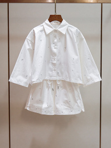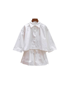S's 新しい夏スタイルフレンチヘビービーズラペル不規則なシャツトップ + A ラインワイドレッグショーツスーツ女性用