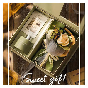 节日女神节礼物送妈妈老师实用的康乃馨花束香薰礼盒套装