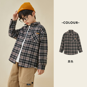多多家男童百搭衬衣帅气春秋款儿童休闲长袖外套色织小格磨毛衬衫