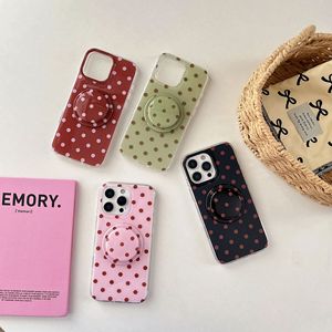 丸みを帯びたフレッシュな水玉模様 iPhone16pro/Apple17promax/15p対応 マグネット式スタンド付きスマホケース 女性向け