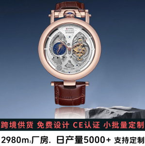ブランドメンズ腕時計中空透明リアルトゥールビヨン防水本革ビジネスウォッチメンズ機械式時計直接供給