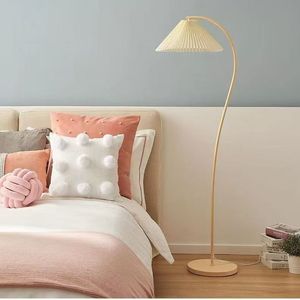 プリーツ垂直フロアランプリビングルームインスタイル高価値ホームベッドルームランプ目の保護ミニマリスト日本のテーブルランプレトロ