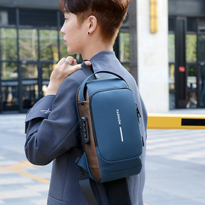 新しいメンズサイクリングバッグパスワードロック盗難防止チェストバッグメンズクロスボディバッグチェストバッグアウトドアスポーツUSBインターフェースチェストバッグ